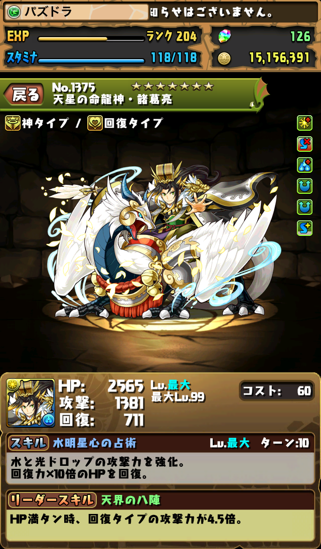 レベルマで回復力は711なので、スキルで7000回復できるんですね。LFなら14000。修正前は3000未満だったので、ここはかなり強化されたと言っていいのではないでしょうか。ダブルドロ強という微妙さは変わりませんが、サブでは回復役としても一応使えるレベルになるということで。。